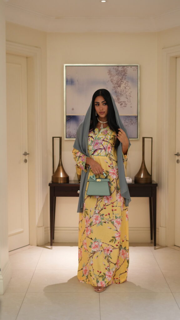 with a vivid nature-inspired print featuring lotus