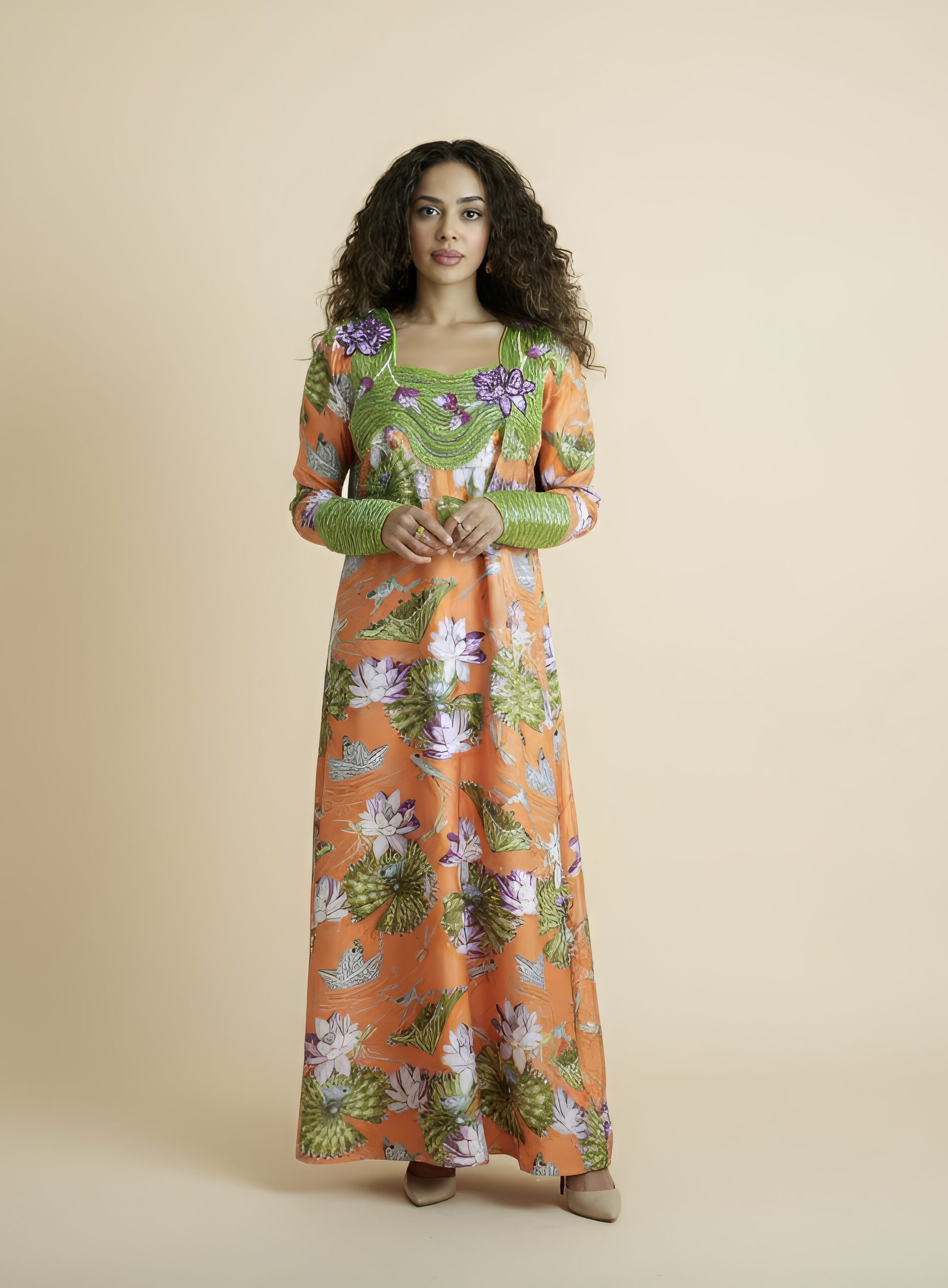 Vibrant and whimsical, Frog Prince ni Orange is a celebration of playful elegance. The fitted